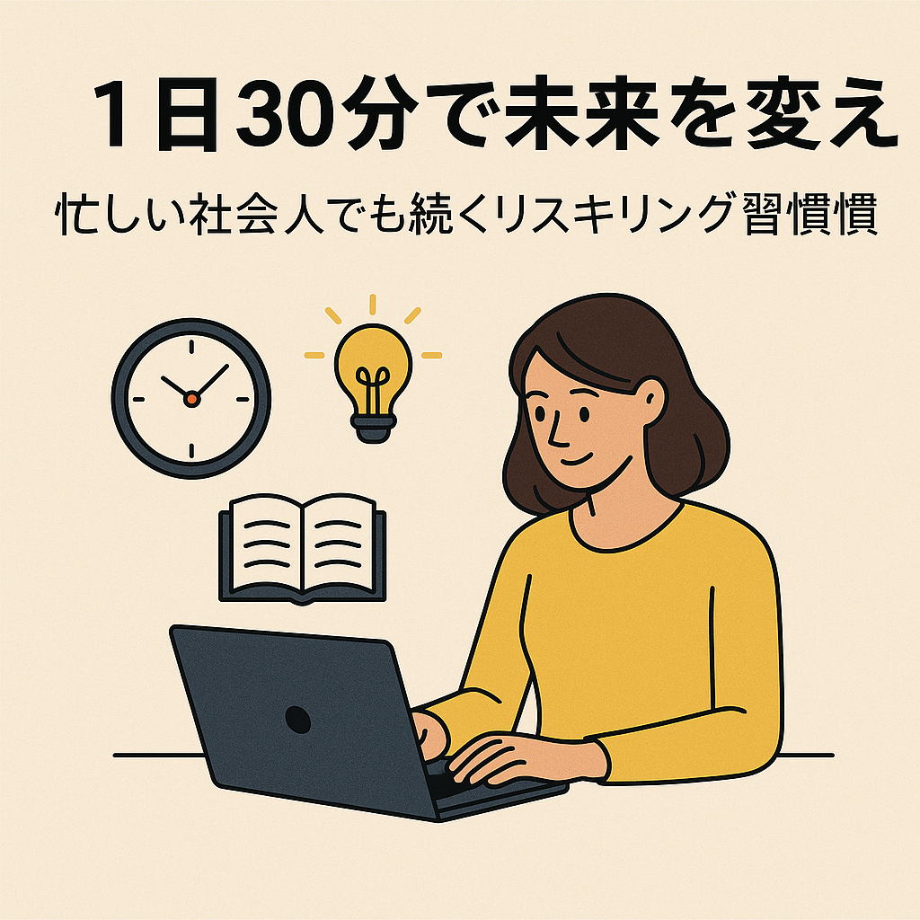 リスキリングは特別な人だけのものではありません。誰でも、1日30分を使って少しずつ学べば、自分の可能性を広げられます。大事なのは「続けること」と「やめないこと」。今日からあなたの30分を、未来への投資に変えていきましょう。